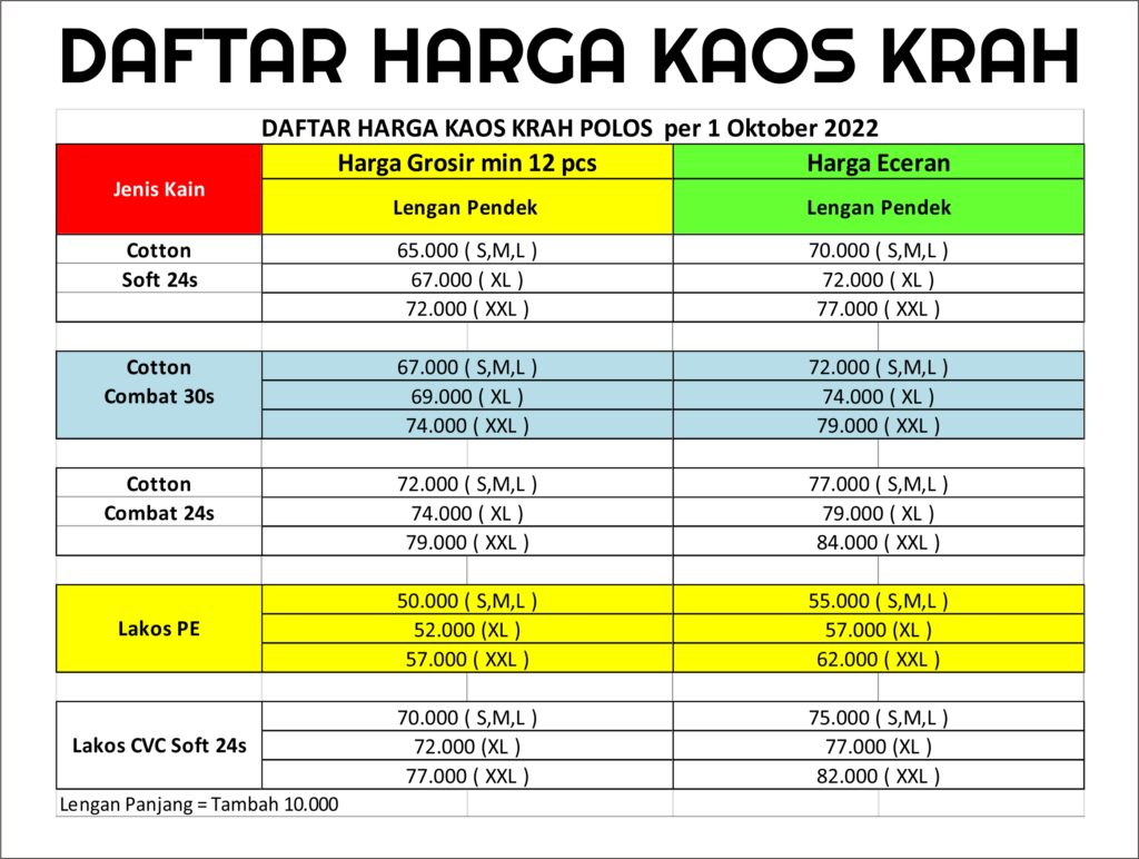 Kaos Polos = 19.000 (min. 12pcs)